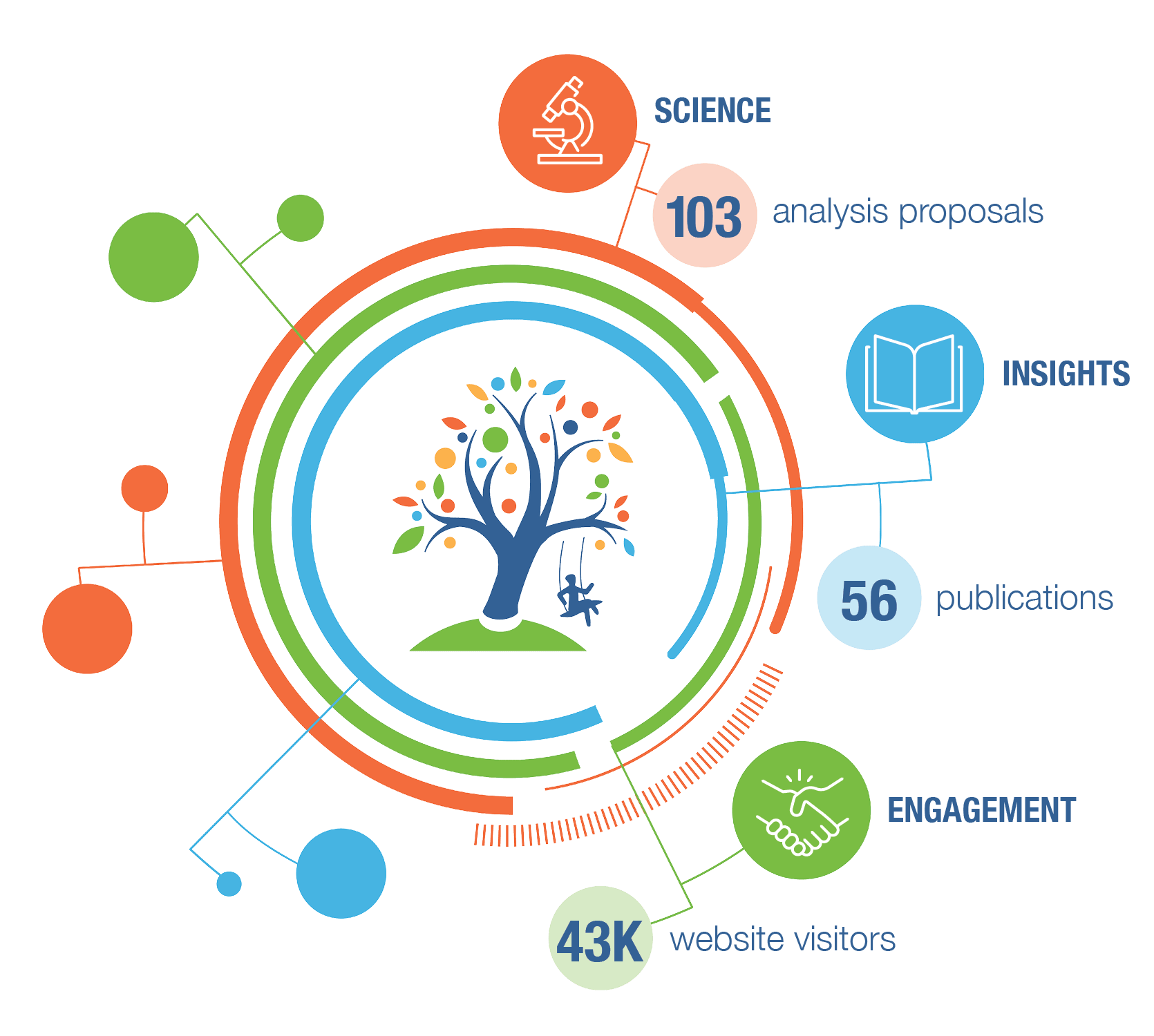 Momentum continues as the collection of biospecimens —blood, hair, teeth, and other samples — grew from 13,619 to 29,000+ over the year. ECHO has now gathered 568,782 individual pieces of information collected through surveys that capture family background, environments, and children’s health and development.